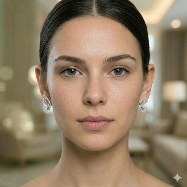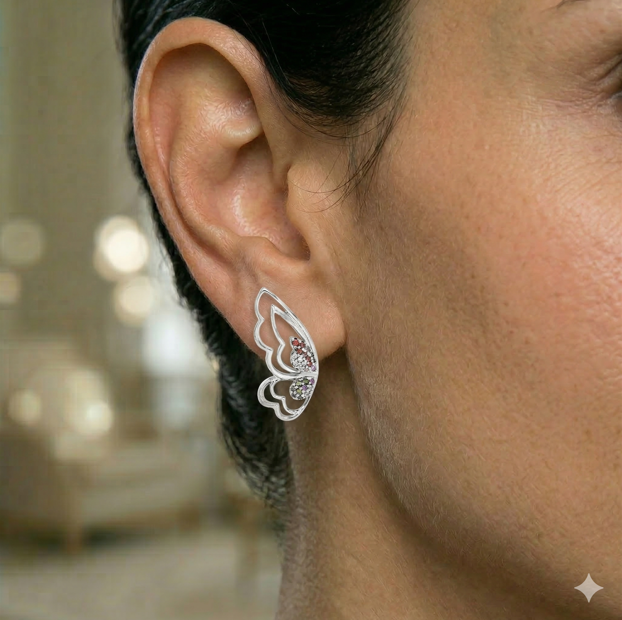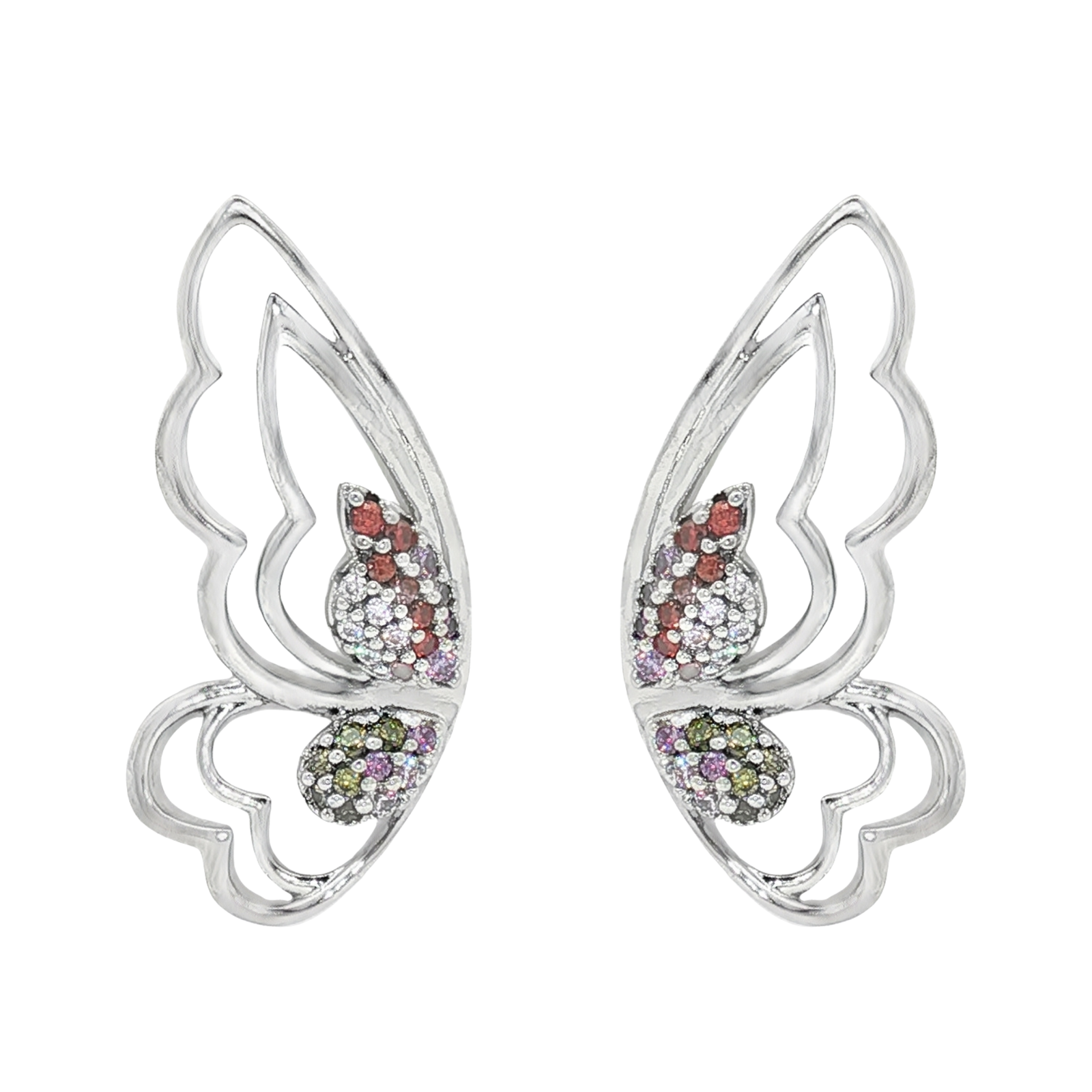 Arete de poste en forma de alas de mariposa con zircones de colores en baño de plata 14 k